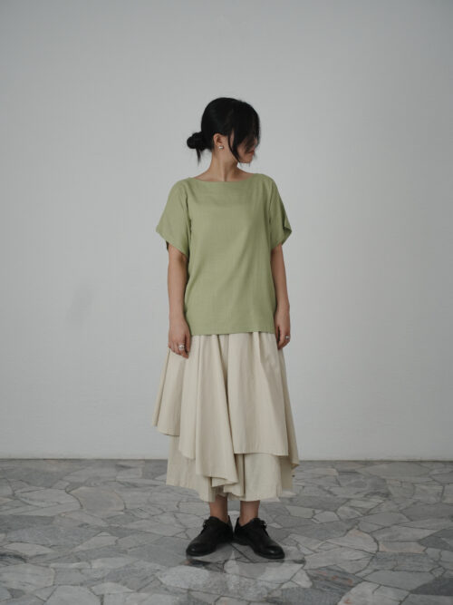 Linen Boat Neck Blouse in Moss Green