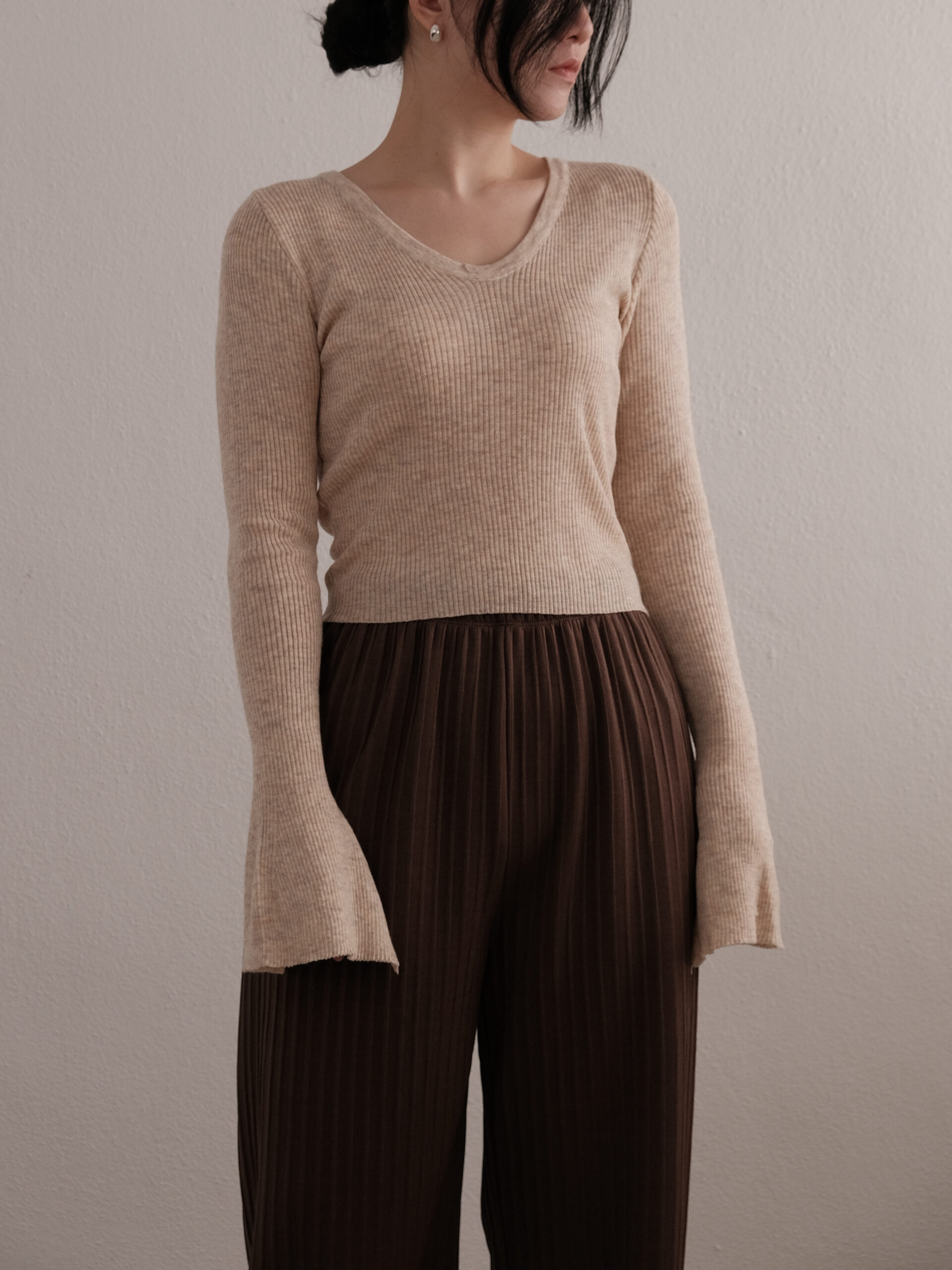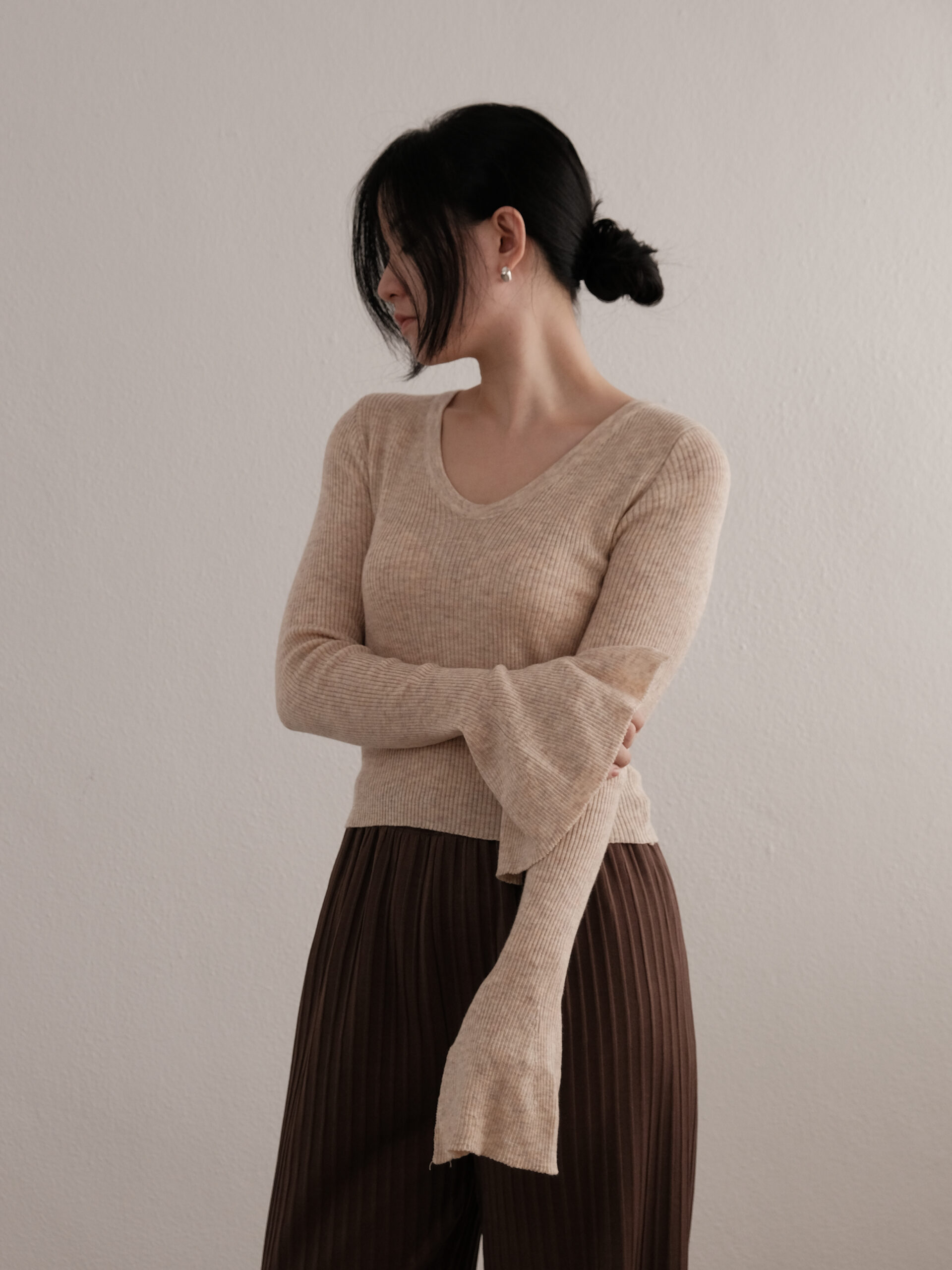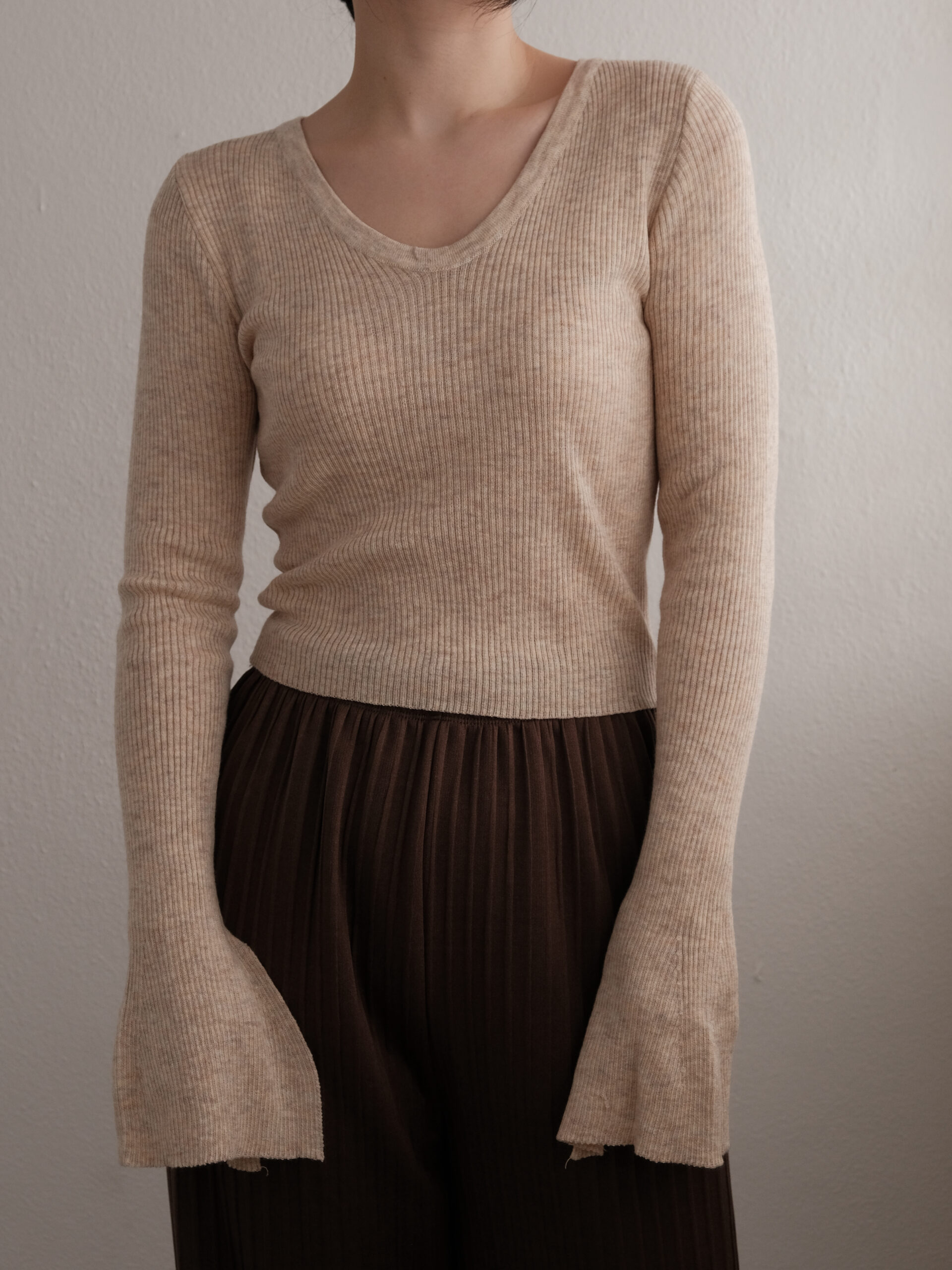 Bell Sleeve Knit Top in Beige