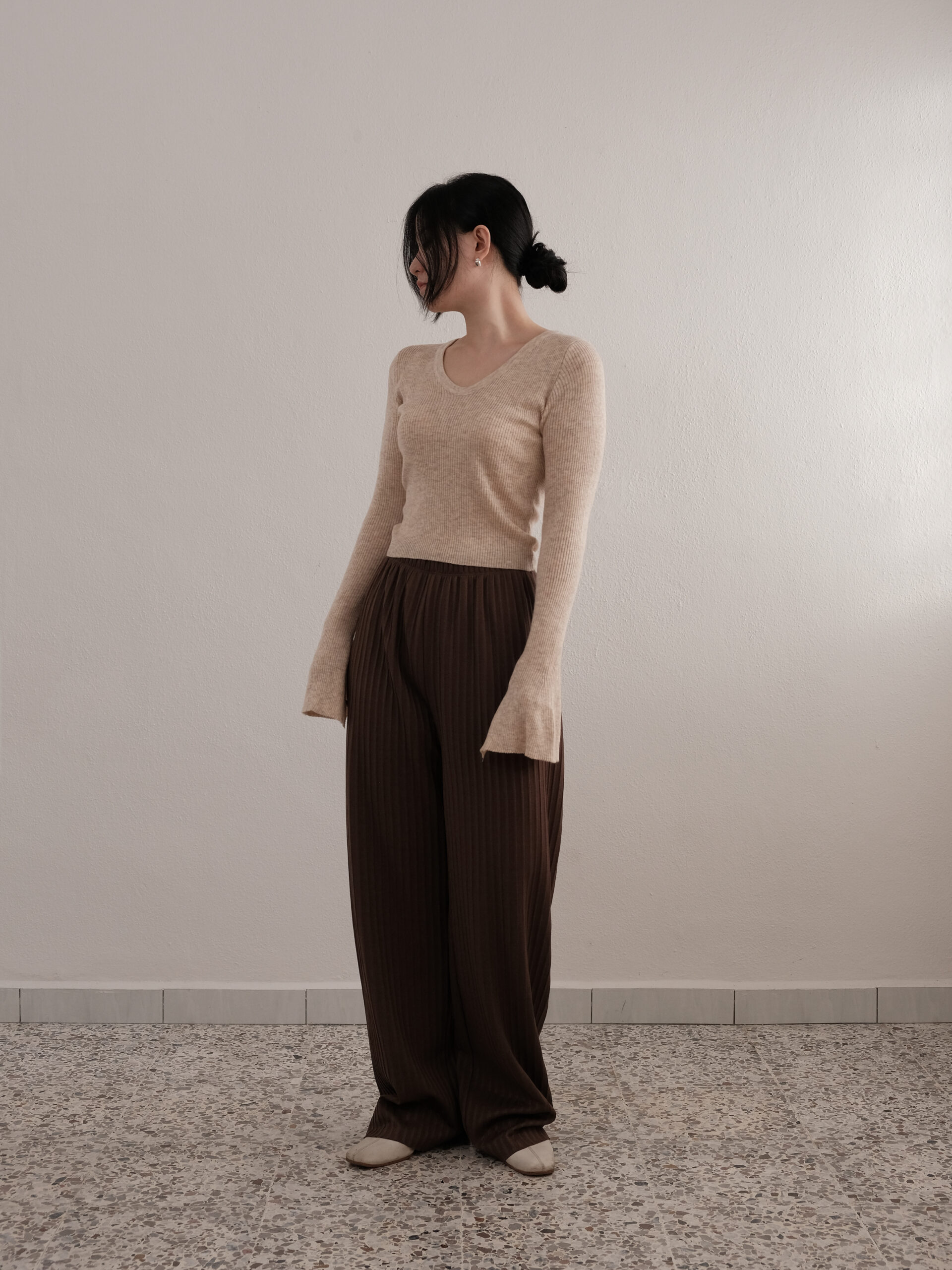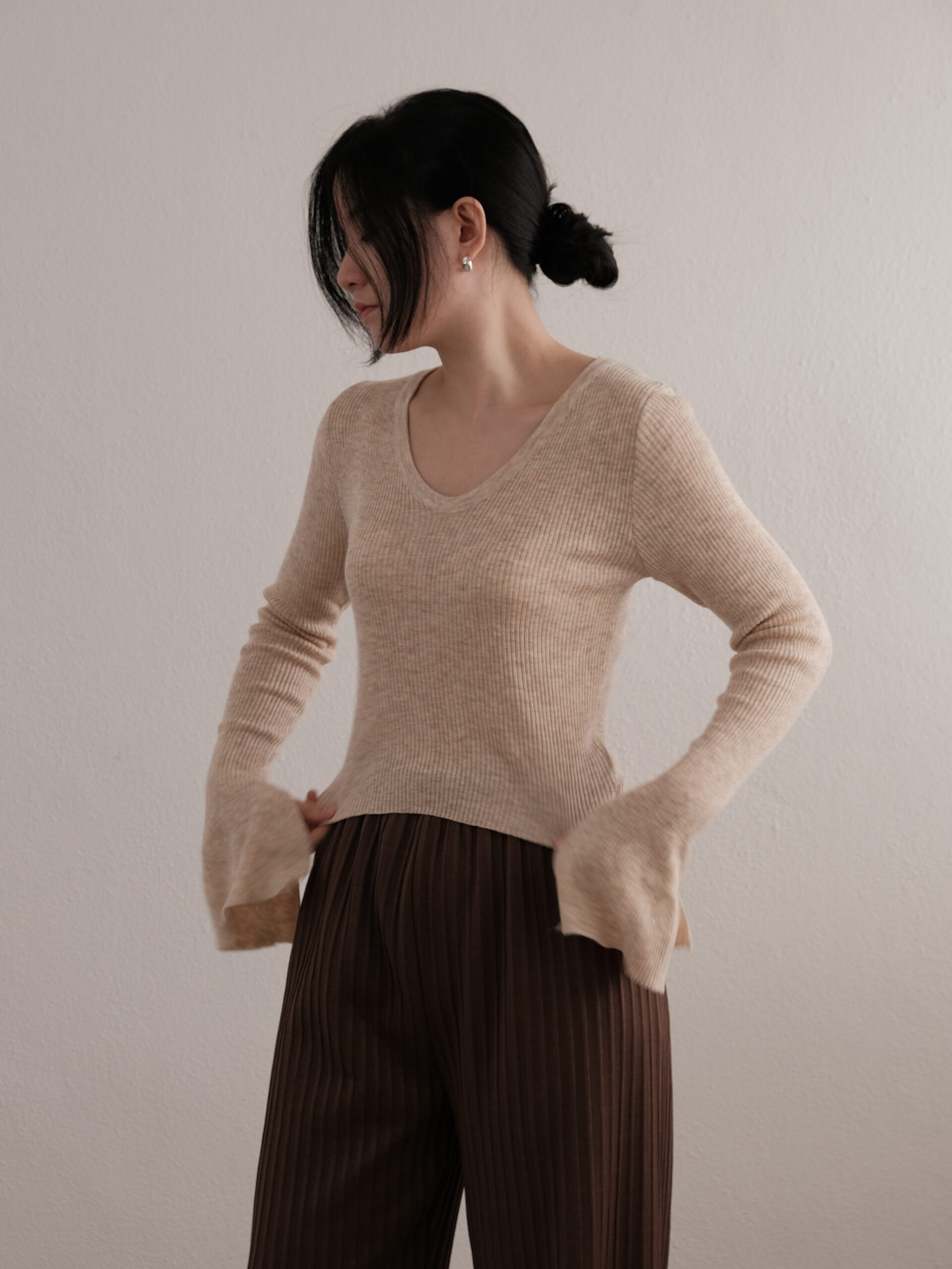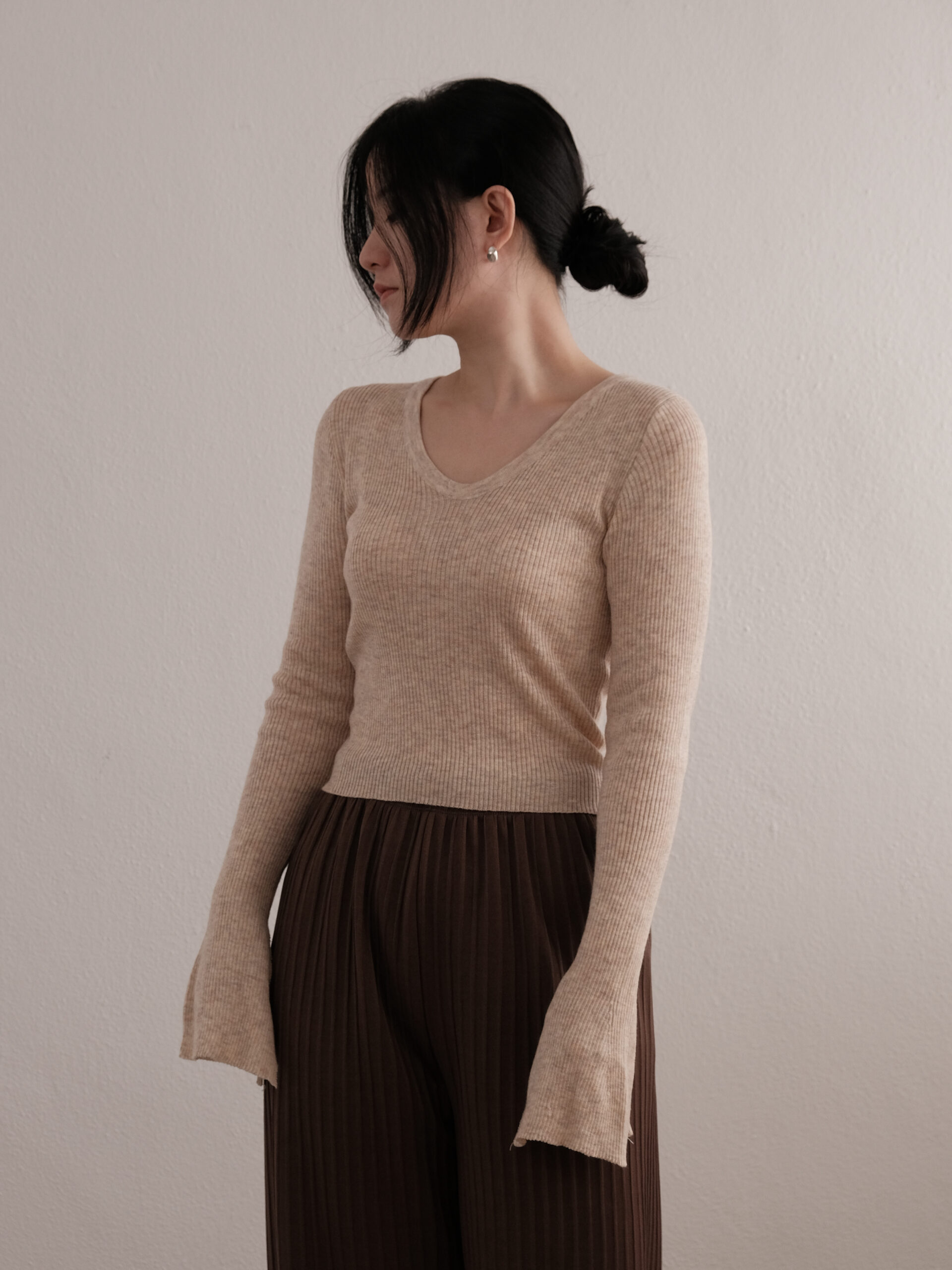 Bell Sleeve Knit Top in Beige