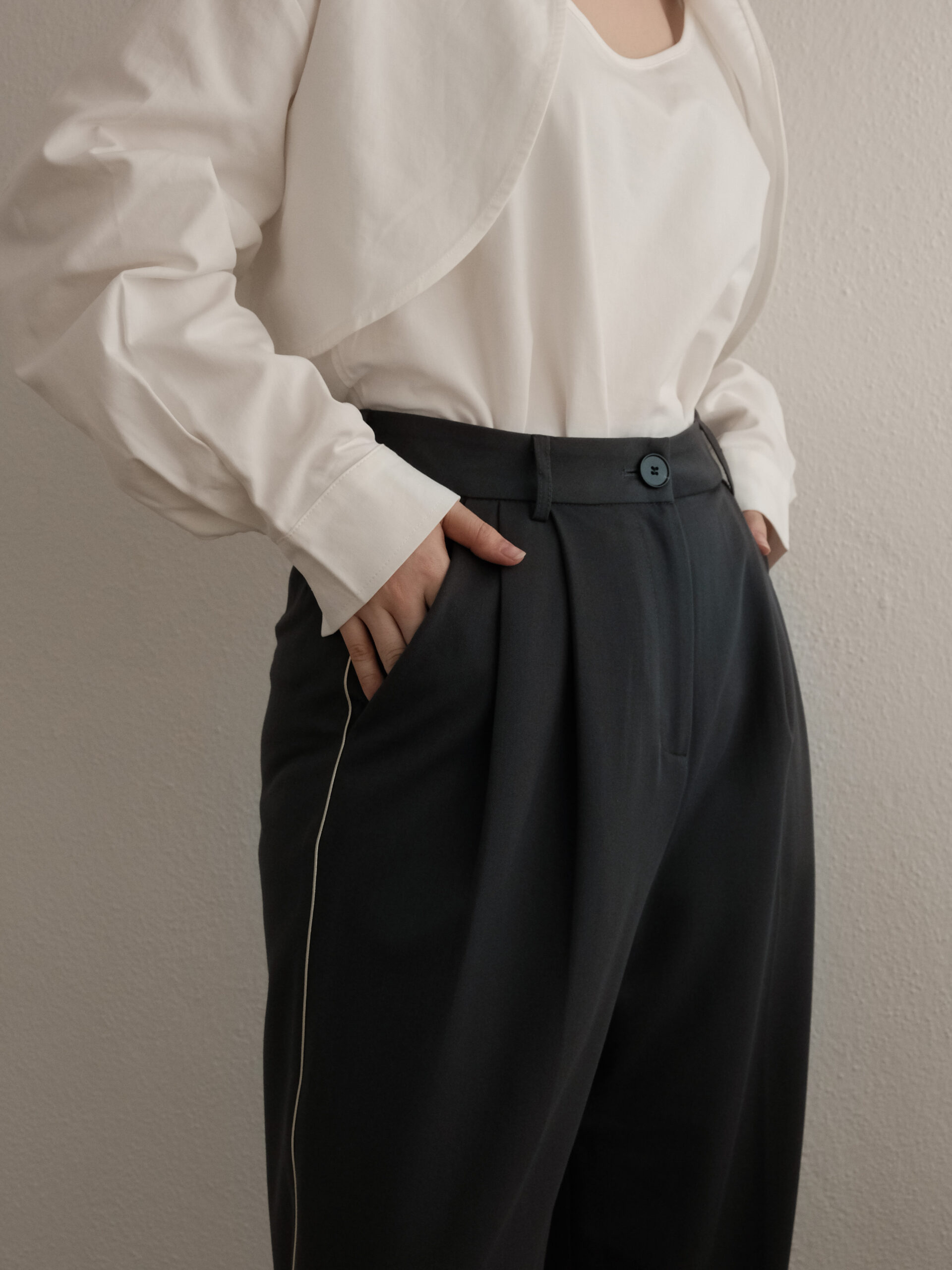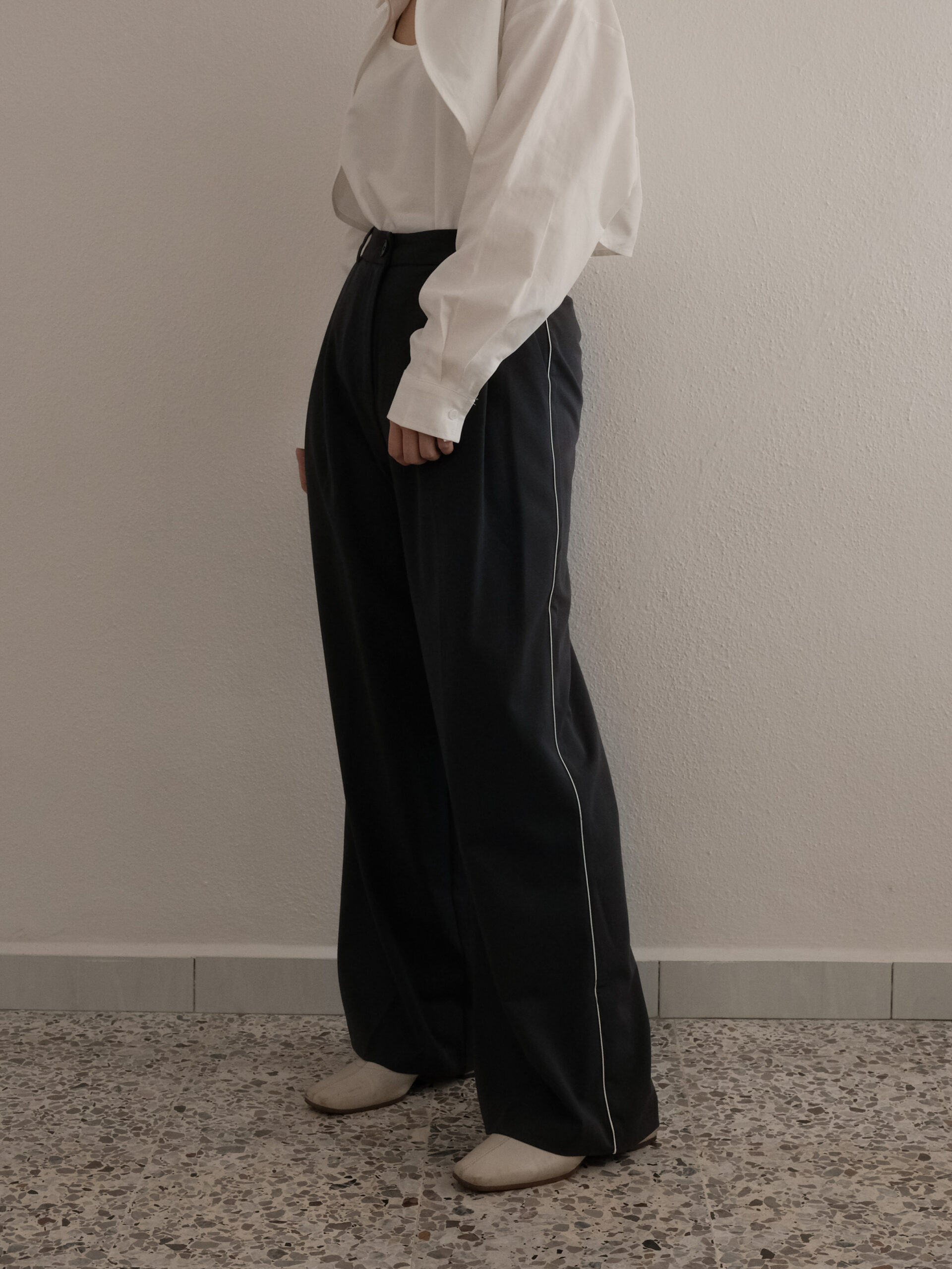 Contrast Piping Pants in Grey