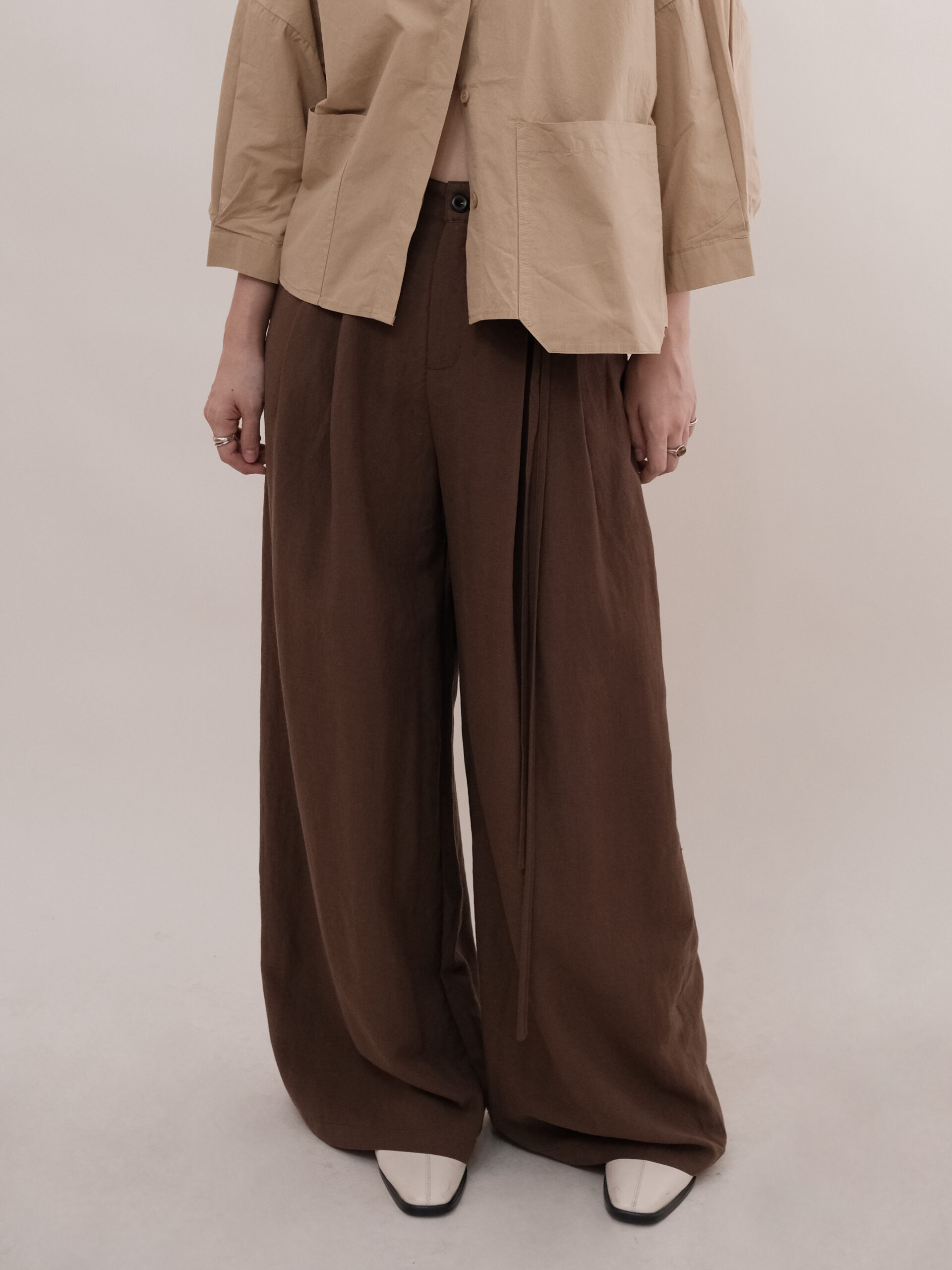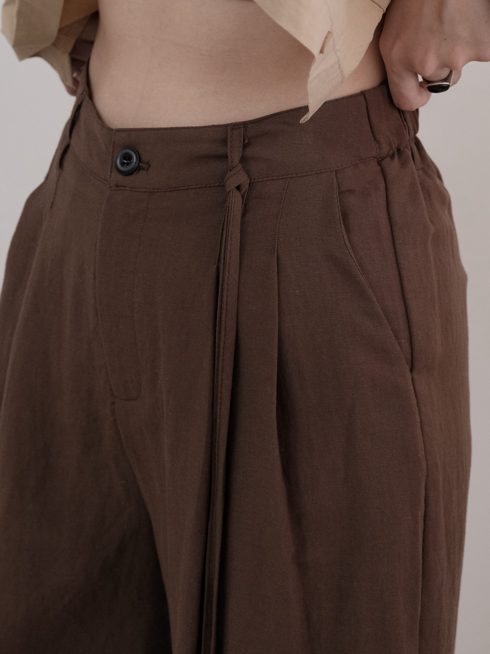 Relaxed and airy, these culotte-style pants are crafted from breathable linen for effortless comfort. Finished with a drawstring waist, they bring an easy elegance to everyday wear.