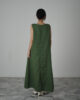 Linen Sprout Sleeveless Dress is crafted in breathable linen, dyed in a deep Forest Green. Designed with a clean V-neckline and a centered slit at both front and back, it allows ease of movement while keeping a balanced silhouette. Finished with functional pockets, this piece is light, grounded, and made for everyday growth.