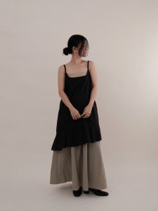 This sheer, loose fitting thigh-length dress is the perfect piece for layering, featuring adjustable spaghetti straps for a customizable fit. The dress is designed with a unique lower pleated diagonal detail, adding a touch of movement and elegance to the silhouette. Ideal for layering over or under other garments, this versatile piece can effortlessly transition from casual to chic.